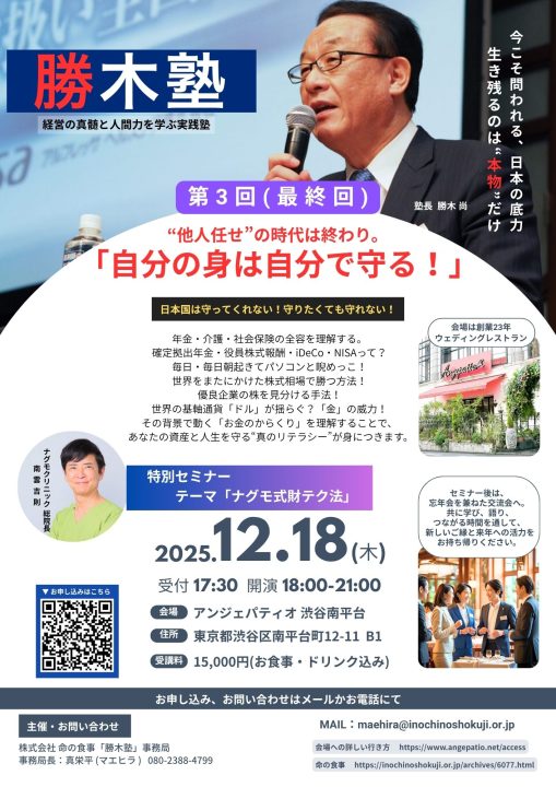 第1回「勝木塾」は大変ご好評をいただきました。